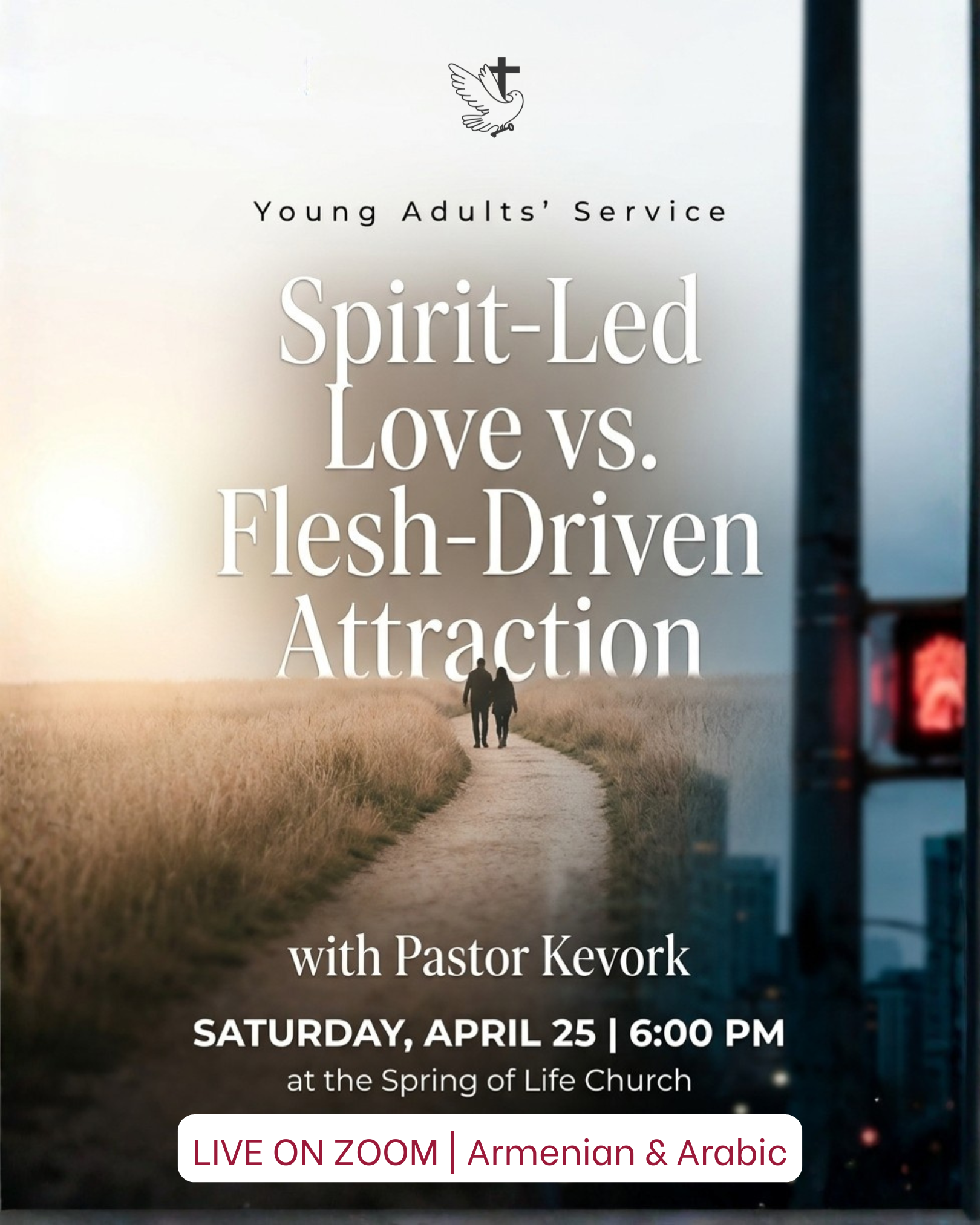 Join us this Saturday for our special Young Adults’ Service as Pastor Kevork will be sharing a powerful message on Spirit-Led Love vs. Flesh-Driven Attraction, exploring the biblical foundations for healthy, God-honoring relationships.
